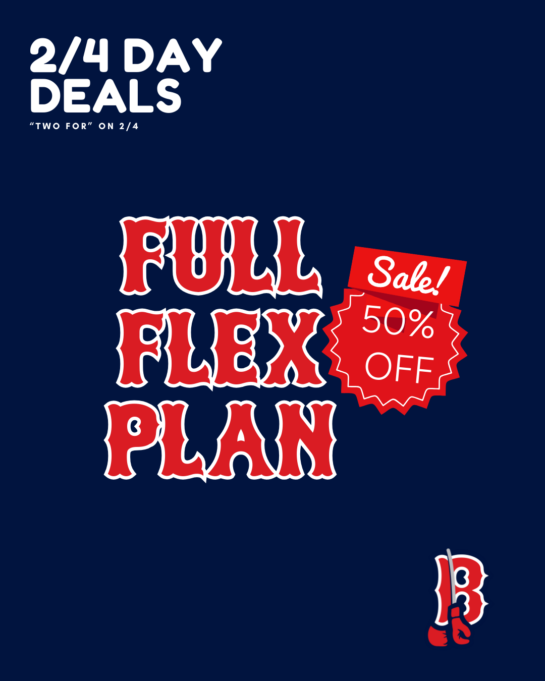 Celebrate 2/4 Day with double the baseball and double the value. For one day only, score two Full Flex Plans for the price of one — that’s 20 Anytime Vouchers for the 2026 season for just $99 (normally 10 vouchers).
